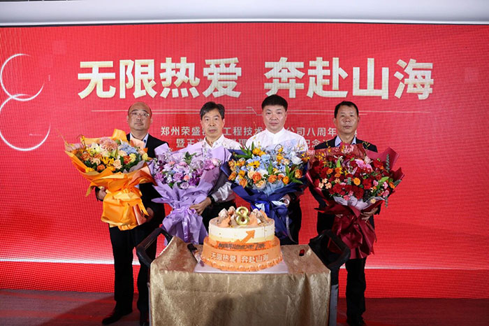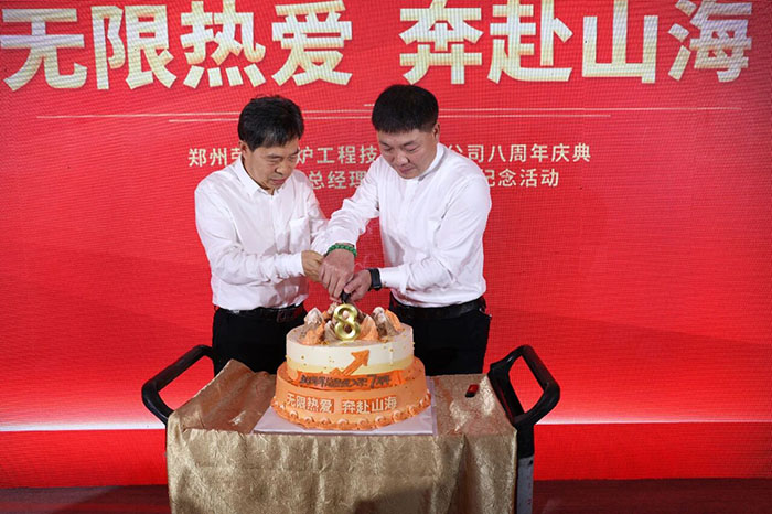 八載同行鑄輝煌,七載相伴譜華章。10月15日,以“無限熱愛,奔赴山!睘橹黝}的鄭州榮盛窯爐工程技術有限公司成立八周年慶典暨王海軍總經理入職七周年紀念活動在鄭州希爾頓酒店隆重舉行。河南榮盛科技集團董事長楚科奇、總經理王海軍、集團管理層、特邀嘉賓及工程項目部員工等70余人出席了活動,共同回顧八年砥礪奮進的崢嶸歲月,展望未來波瀾壯闊的全新篇章。