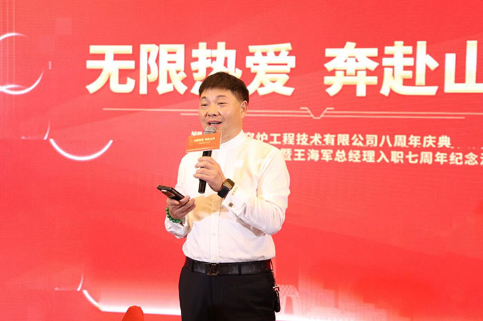 緊接著,集團總經理王海軍發表了精彩致辭。王總以真摯的情感,分享了與榮盛風雨同舟七年的心路歷程。他感慨,七年時光,見證了公司的跨越式發展,也見證了團隊的成長與凝聚。每一項技術的攻堅克難,每一個項目的交付,都是全體榮盛人并肩作戰、共赴山海的生動寫照。王總表示,未來將繼續與全體家人一道,以更加堅定的信念與飽滿的熱情,迎接挑戰,再創輝煌。